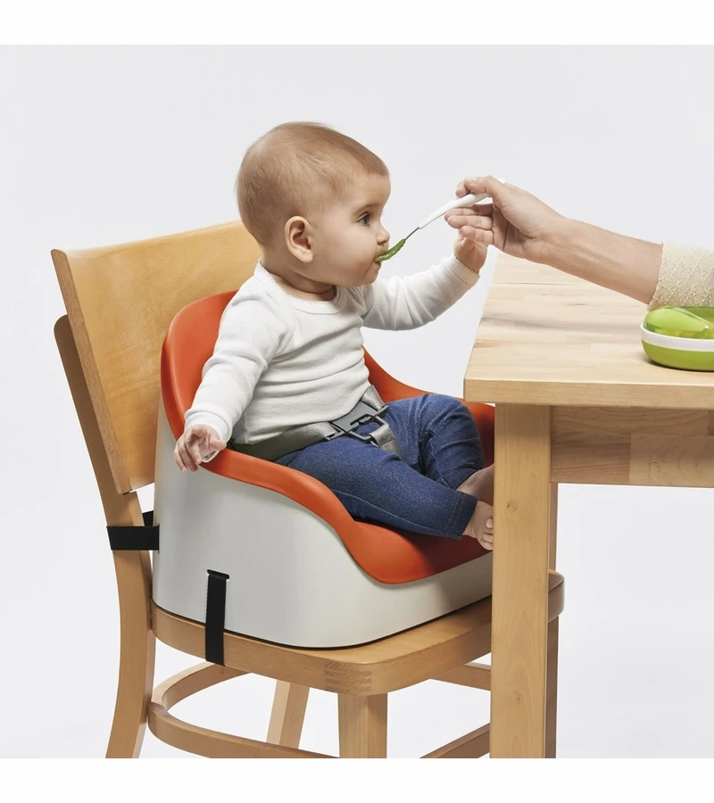 The OXO Tot Nest™ Booster Seat is a Booster Seat with Straps that will bring kids to the family table from as young as nine months. The Nest Booster Seat was designed with a soft cushion, as well as a high back and sides, to make any grown-up chair comfortable for your little one. It was also designed to be easy to clean and store, to make the after-meal clean up comfortable for you. The 3-point harness keeps even the wiggliest tot secure, and is adjustable for growing kids. Two side-release buckles keep kids securely strapped in (and keep them from escaping!). The back and bottom chair straps are adjustable for a secure fit on different chair styles and sizes and the non-slip feet keep the Nest Booster Seat stable while protecting chairs from scratches. The built-in handle allows for easy transport and the straps are removable for children over 3 years. Whether for a quick trip to Grandma’s or for long-term storage, the straps store neatly in a compartment under the Booster Seat. The simple, sleek design complements any home décor.