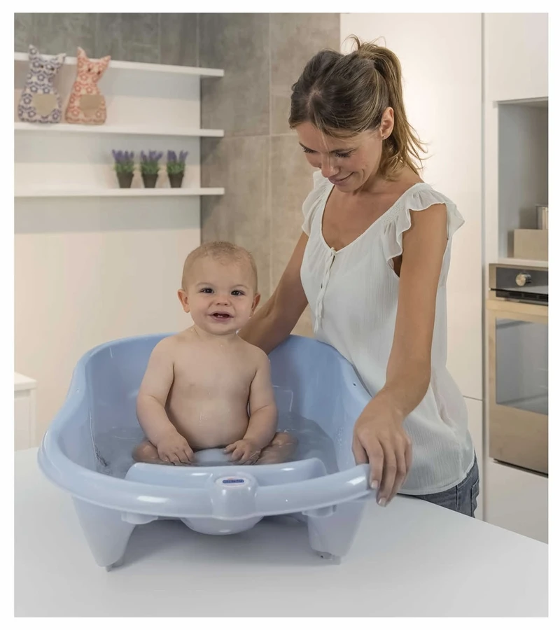 Equipped with an easy to read crystal thermometer and maximum water level indicator, the Onda Evolution gives parents the confidence they need to make sure baby is safe in the bath. Slip-free rubber has been built into the tub in order to keep baby in the perfect position for bathing. An easy to use plug provides quick and efficient water drainage, letting parents focus on what’s most important – the health and safety of their little one. With the Onda Evolution, bath time has never been more fun.
