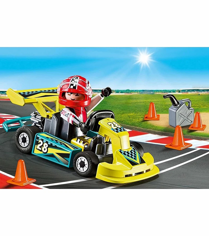 Figures: 1 racer; Accessories: 1 carry case, 1 jerry can, 4 pylons, 1 racing car