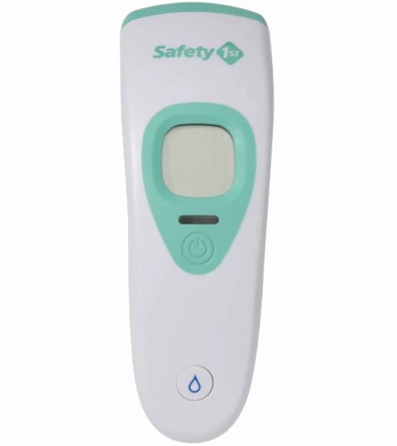 The Safety 1st Easy Read Dual Mode Thermometer is both a no-touch forehead thermometer and a no-touch liquid temperature taker thatÂ’s great for checking bathwater or formula to confirm it isnÂ’t too hot. Taking a forehead temp is simple and quick. Line up the red LED dots directly on your childÂ’s forehead. When the dots are directly over one another, youÂ’ll know the thermometer is at the right distance and you can press the read button. In just one second, you’ll hear the beep that lets you know the reading is complete. ItÂ’s really that easy! The large backlit display is easy to see, and the fever light bar glows to alert you when a temperature is detected.