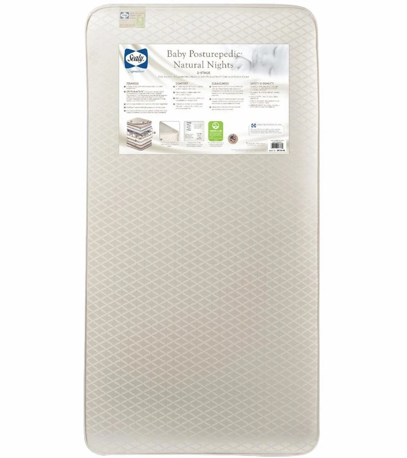 - 2-Stages of firmness with a firmer infant side (labeled) and softer toddler side made with multiple layers of orthopedic cushioning and cozy cotton