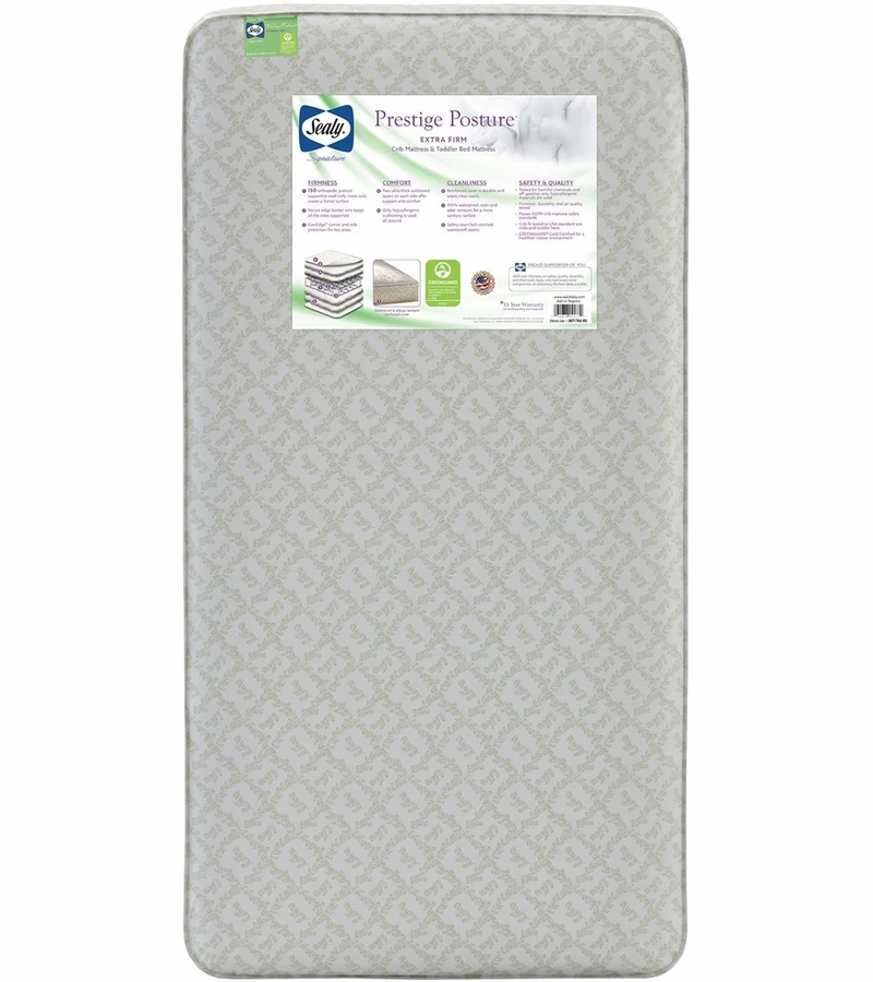 The Sealy Signature Posture Perfect Superior Firm crib and toddler bed mattress is engineered with firm steel innerspring coils and multiple firmness and comfort layers for superior posture support.
