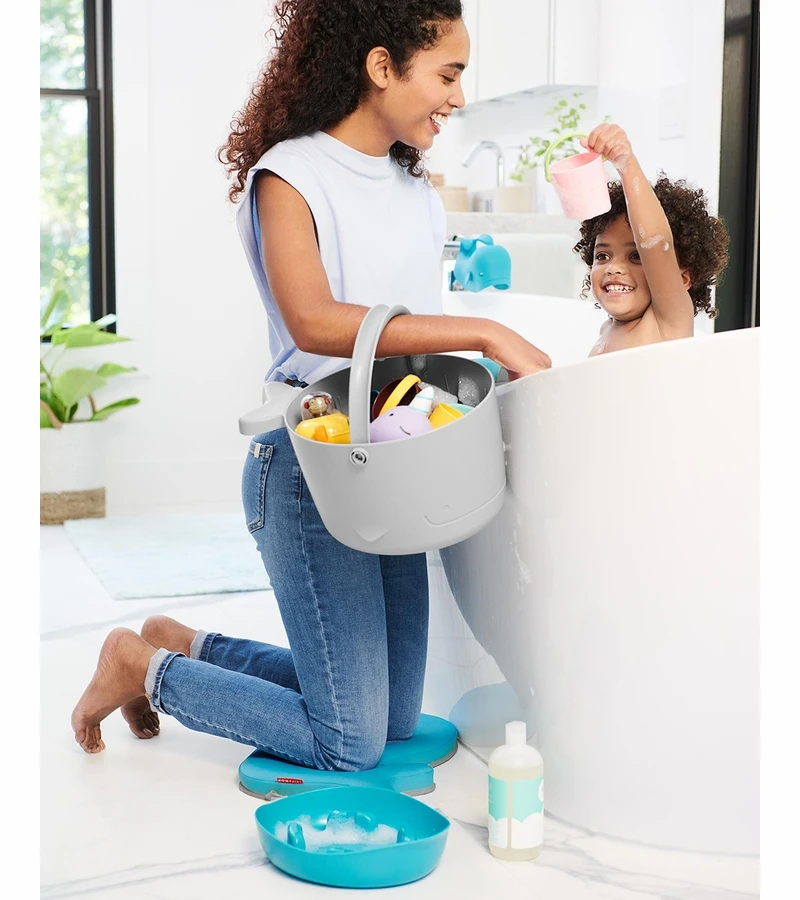 Keep all your little one’s favorite bath toys organized, dry and within reach with our generously sized bath toy bucket. Featuring tons of storage space, plus large drainage holes and a separate standing base to collect excess water, the cute whale design adds a splash of fun beside your tub.