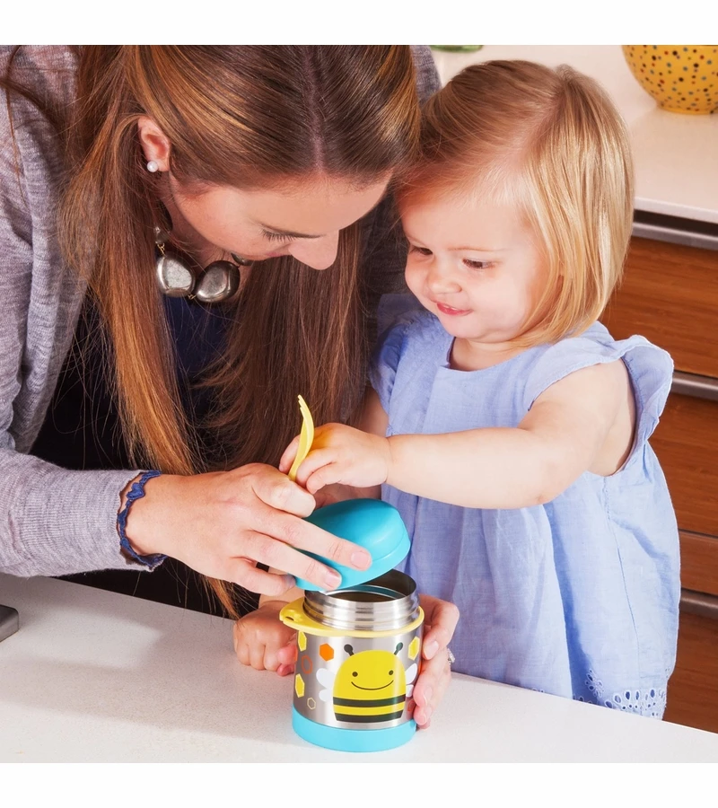 This colorful stainless steel container keeps kid-sized portions warm or cold. Store the spork, or most utensils, in the handy built-in holder so your little one is ready for meals on-the-go.