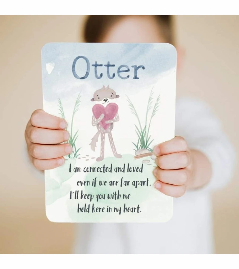 Otter Kin comes with a removable heart to give to a loved one during times when we are not able to be together. Practice speaking the affirmation with your little ones over video calls with the loved one who has Otter’s heart, or by writing letters and sending messages.