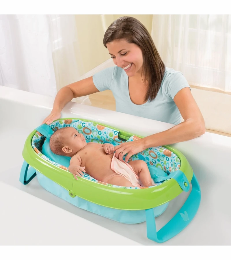 EasyStore Comfort Tub offers versatility and convenience for bathing your little one. The tub folds easily and compactly for storage and travel. The large tub includes an inclined positioner that can be removed as your baby grows. The inflatable base provides an extra soft, padded cushion for your little one.