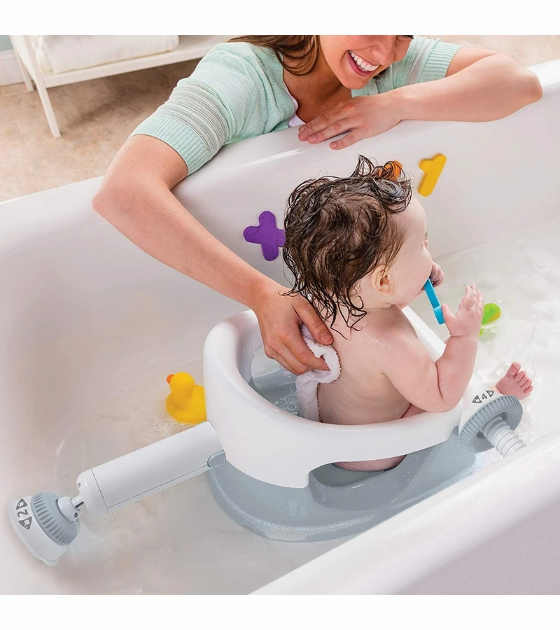 The Summer? My Bath Seat? provides a helping hand to parents at bath time, and is perfect for increasingly mobile little ones transitioning to an adult tub. With its three sturdy arms for 360? of support, high back rest and spacious frame, you can keep your baby securely in place while freeing up both of your hands to scrub and play.