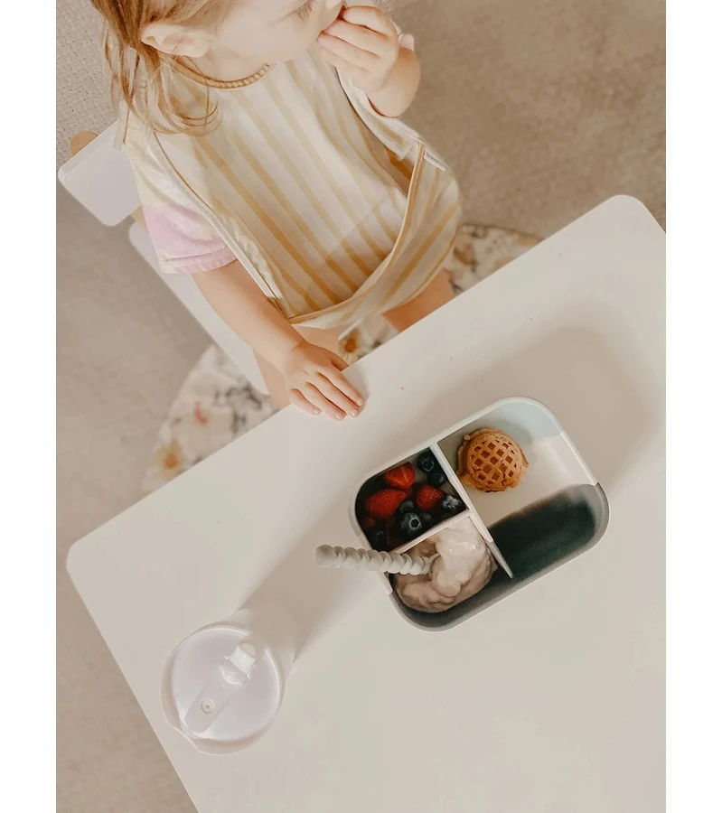 Ditch the plastic and switch to silicone! Our Silicone Bento Boxes are one of a kind and are perfect for your child’s lunch. They fit perfectly into their lunch box and you can place them in the freezer overnight to keep your child’s food cold for a period of time. The Bento Boxes have 3 available sections and a lid. The biggest section can fit a whole sandwich (Cut in Half).