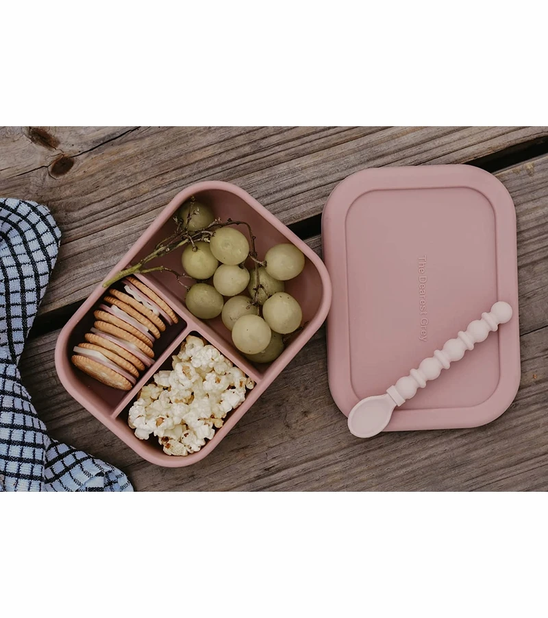 Ditch the plastic and switch to silicone! Our Silicone Bento Boxes are one of a kind and are perfect for your child’s lunch. They fit perfectly into their lunch box and you can place them in the freezer overnight to keep your child’s food cold for a period of time. The Bento Boxes have 3 available sections and a lid. The biggest section can fit a whole sandwich (Cut in Half).Â