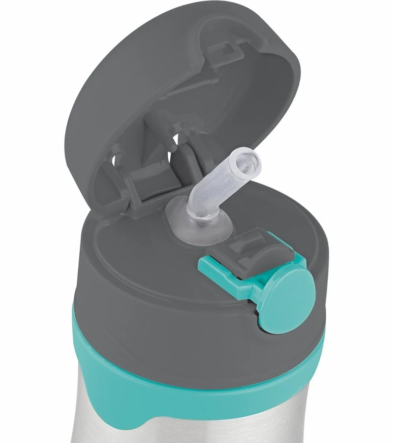 - Hygienic push button lid with pop-up silicone straw is easy to open