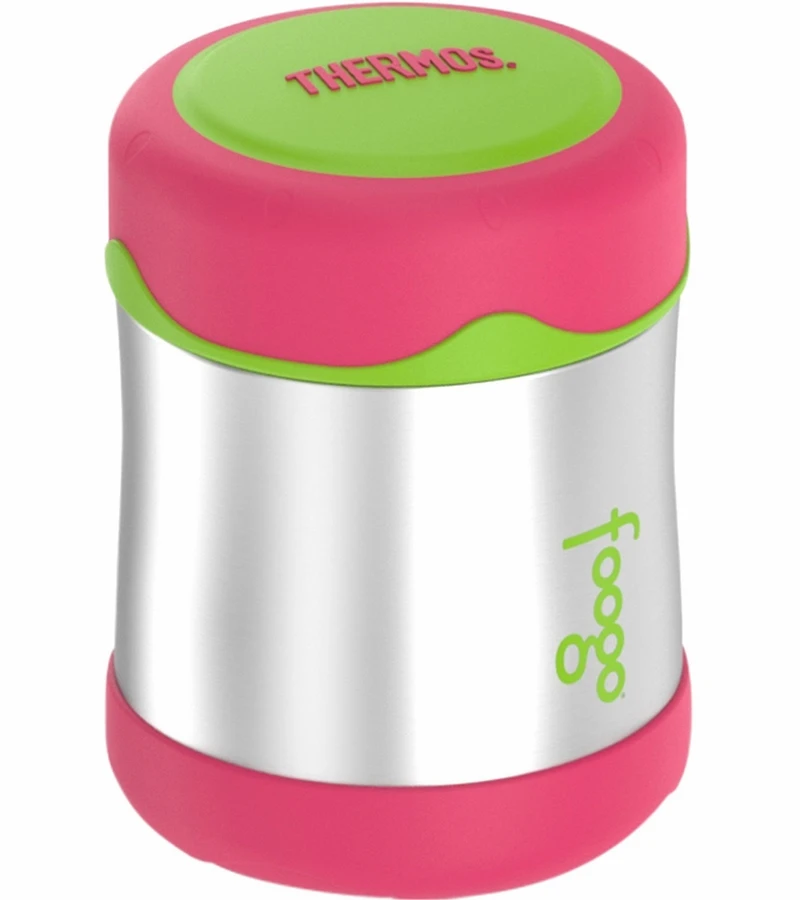 Freshness and safety go hand in hand. If contents are not kept at the right temperature, potentially dangerous bacteria may grow rapidly and cause food and beverages to spoil. All Foogo? stainless steel products feature Thermos? vacuum insulation technology which has been shown to inhibit the growth of bacteria in a laboratory test sponsored by Thermos and performed by Cornell University. For additional peace of mind Foogo products use BPA-free materials. The Foogo food jar from Genuine Thermos? Brand has a 10-ounce capacity and will keep warm items warm for up to 5 hours or cold items cold for up to 9 hours. Thanks to the durable double wall stainless steel construction and vacuum insulation, this food jar stays cool to the touch with warm foods and sweat-proof with cold foods. The Foogo food jar features an ergonomically-designed lid with a rubber grip that is easy to handle and open. It has a wide opening making it easy to fill, eat from and clean. Ideal for packing fresh, healthy foods and snacks, the Foogo food jar is sure to become a favorite on-the-go meal companion. Care is simple: to clean, hand washing is recommended for best results, or top-rack dishwasher safe.
