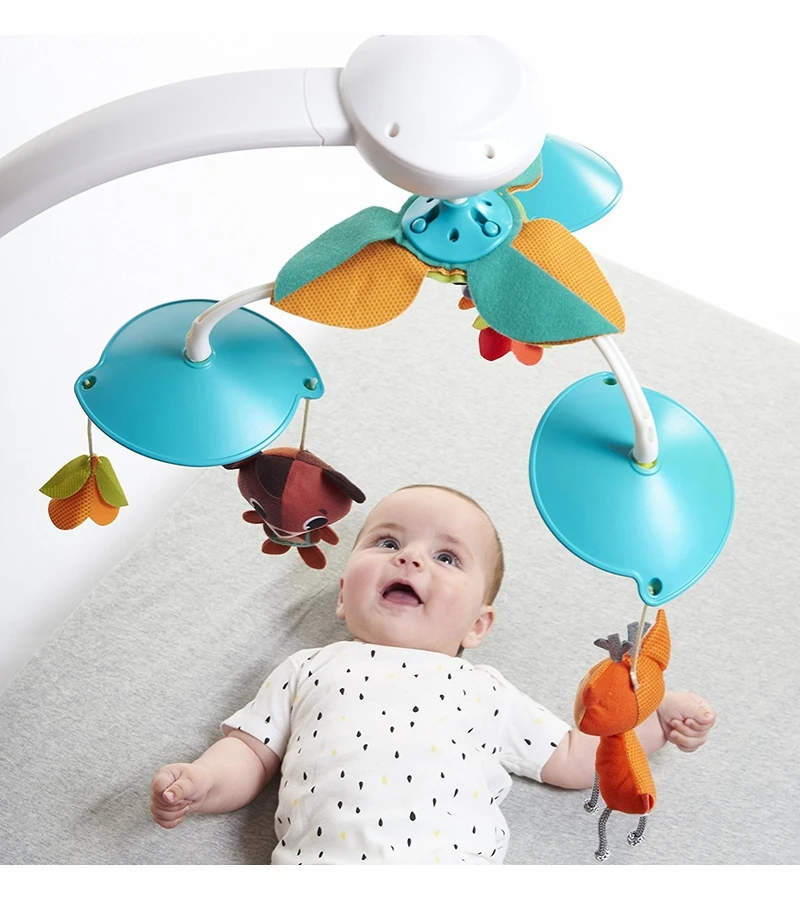 Provide your little one with engaging activities, adorable forest friends and a musical soother with the Tiny Love Into the Forest Classic Mobile. This clever mobile allows parents to easily moderate the level of stimulation. Activate the movement, lights and music all together or introduce your baby to one feature at a time; Enjoy the full mobile experience or remove the overhead arm and use as a music box only. At 1-3 months your baby looks up and is now able to follow the moving objects with their eyes, thereby developing sight and strengthening eye muscles. After 5 months you can now remove the mobile’s arm and leave the music box for your baby to play with independently.