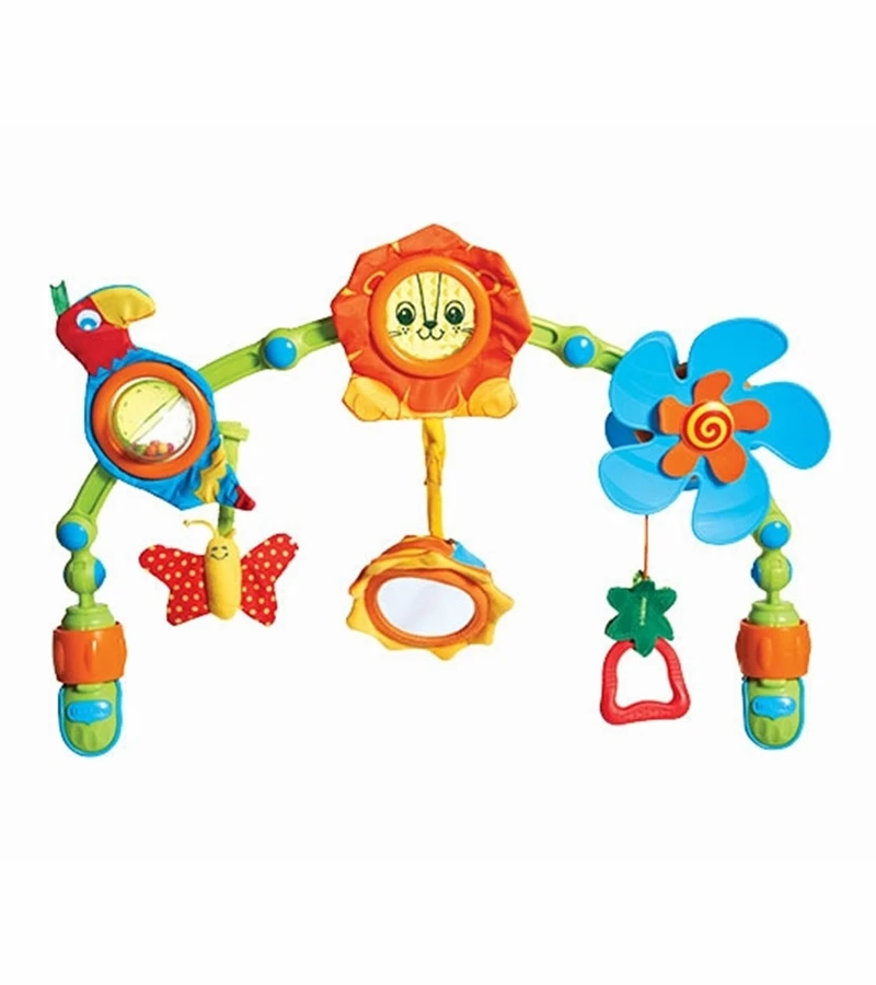 A dual-stage colorful flexible arch with a variety of engaging activities for baby on-the-go