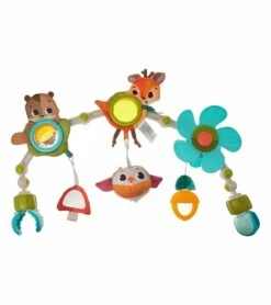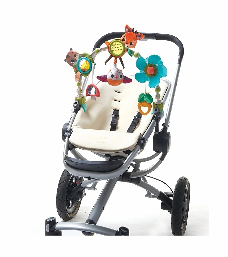 The flexibility of the Musical Forest Stroller Arch allows you to moderate the level of stimulation offered with a simple adjustment the arch to alter the toys that are within your baby?s field of vision. You can also fold the arch in a way that allows your baby to focus on just one or two of the toys if you feel they are becoming overstimulated. The adjustable arch is also designed to adapt to a variety of stroller styles and attaches easily with the universal clip.