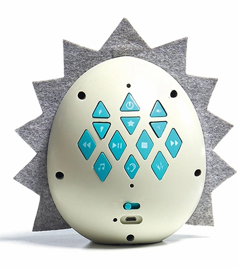 The Tiny Love Sound n Sleep Projector Soother is the perfect sleepy time friend for your little one. This adorable Marie Hedgehog starlight projector sends a lovely array of delightful stars onto the ceiling to lull babies into a peaceful slumber. It also contains a clever mp3 player that allows you to download up to an hour of your babys favorite songs directly into the soother for a one-of-a-kind experience. A smart sensor automatically activates your personalized soothing music and lights when baby cries and features an auto timer that can be set for 15, 30 or 60 minutes. The auto-timer can also be used with the built in soothing sounds: 35 minutes of different melodies and a selection of nature sounds. In addition to the projected stars and music, the soother includes a soft glowing nightlight that helps comfort baby during quiet times. Having a sleepy time friend nearby helps make bedtime more fun for everyone.