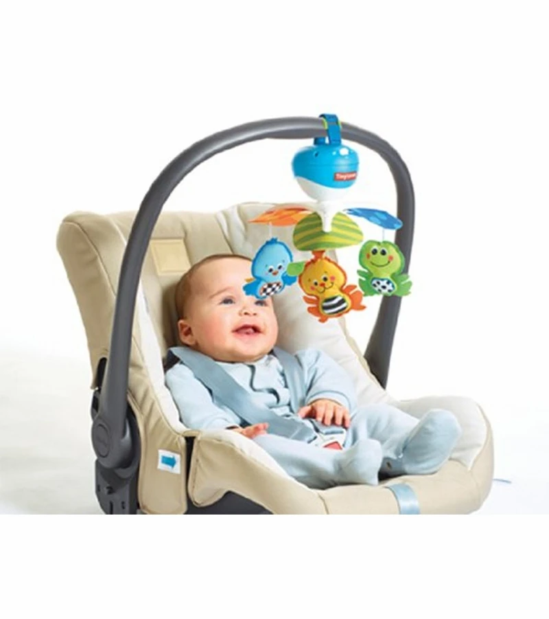 On the Go Mobile is a versatile mobile that can attach to most pack n plays, and infant carrier seats. It easily folds up and can be taken anywhere to soothe a baby.