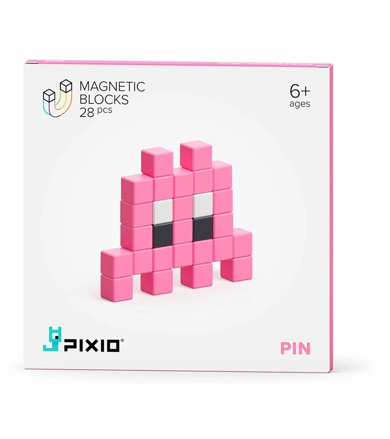 You’ll get 28 PIXIO blocks in 3 colors to bring Pin to life. He is small and shy, but his secret weapon is the color pink: it makes everyone fall in love.