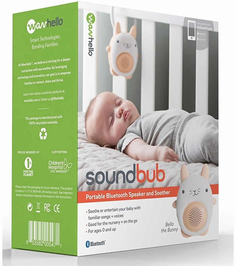 Want to record and share voice messages with your child and loved ones? SoundBub connects directly to the free VoiceShare? mobile app allowing anyone you love to record messages and share content with your little one and each other. SoundBub? makes it possible to soothe, stimulate and connect with your child wherever you are!