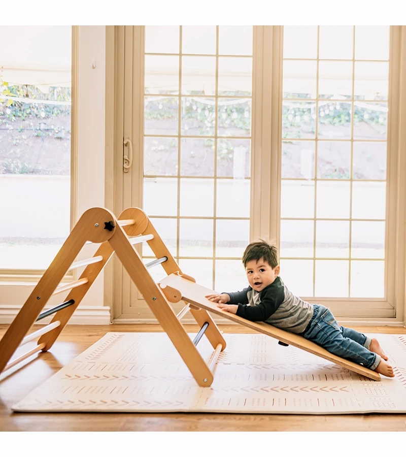 Our 3-piece Mini Mighty Indoor Gym is the perfect alternative to the playground. Comes complete with slide that reverses to climbing wall, ladder, and mini monkey bars. Crafted of solid, sturdy beach wood, this beautiful little gym will help encourage physical activity, balance and hours of fun for your mighty minis. Your kids will be all over it!